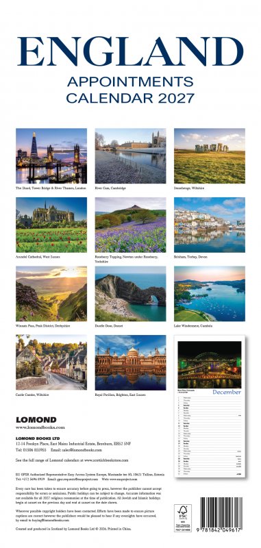 Enjoy wonderful scenic images throughout the year with our range of 2027 calendars.