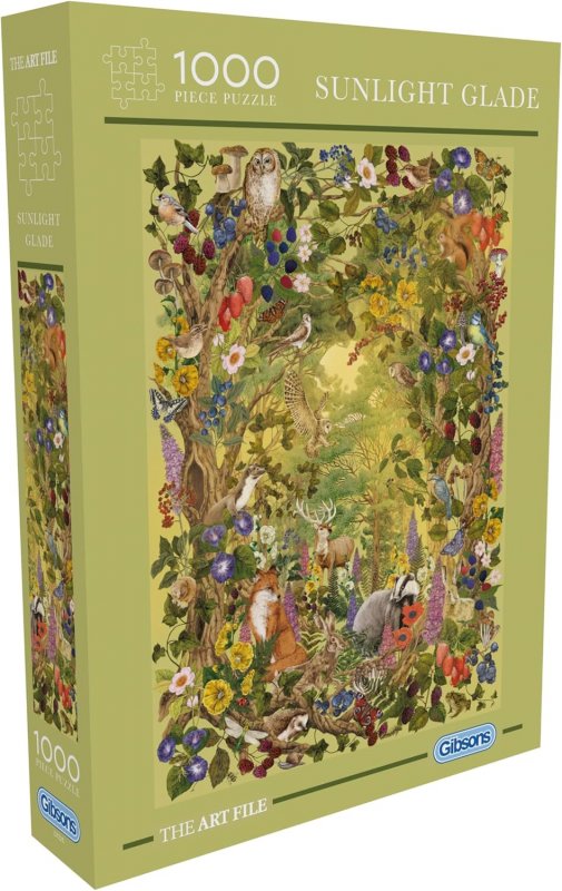 This 1000 piece puzzle features a peaceful summer scene where forest animals gather in a sunlit glade, surrounded by tall trees and the quiet hum of nature.