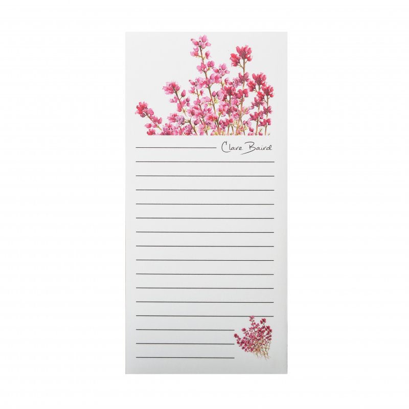 Get rid of mind clutter with this super organised list pad featuring the wonderful watercolour paintings of Scottish artist Clare Baird. This pad features the Scottish heather design. A great way to spill out things to do, things to remember and things to achieve in the busy lives we now lead. Made from 100gsm quality paper with a magnetic back, simply pop it on the fridge so it’s always handy when you need it.