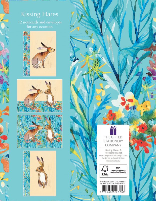 Folding wallet contains 12 notecards across 4 designs, blank inside and accompanied by a white envelope.