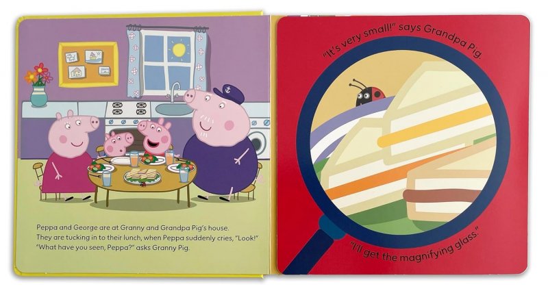 Peppa and George are in the garden looking for minibeasts with their magnifying glasses. Join in and open the pop-ups to help find some! This brilliant book has colourful insects and bugs popping out of every page. How many will you spot?