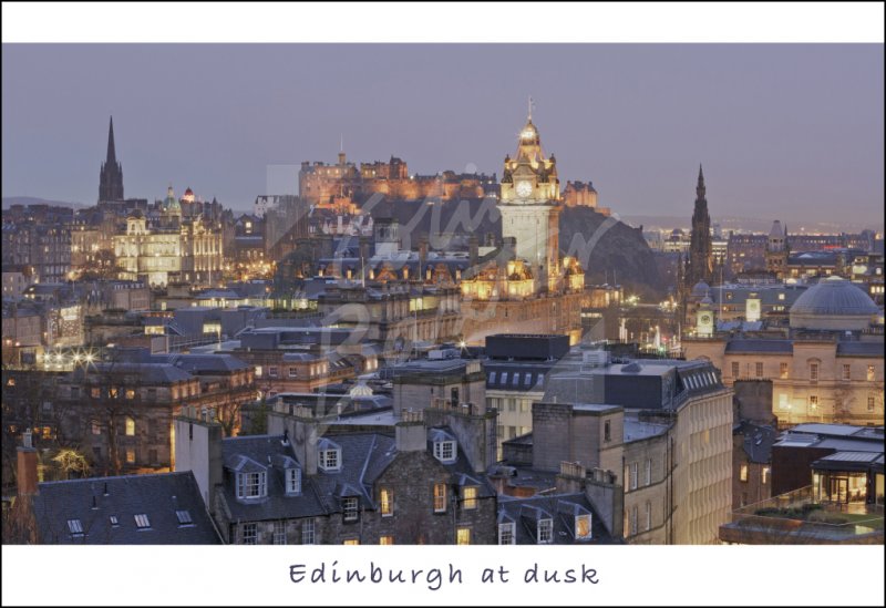 City and Arthur's Seat at dusk, Edinburgh Postcard