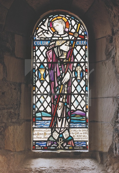 St. Columba stained glass window, Iona Abbey Church Postcard