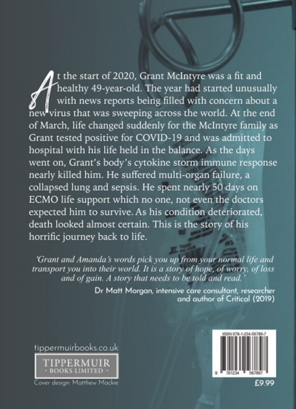 At the start of 2020, Grant McIntyre was a fit and healthy 49-year-old consultant and Professor of Orthodontics. At the end of March, life changed suddenly for the McIntyre family as Grant tested positive for COVID-19 and was admitted to hospital for the third time in a week with his life held in the balance. Nobody knew what was to come and even the doctors did not have any answers. As the days went on, the news became darker. Grant's body's cytokine storm immune response nearly killed him. He suffered multi-organ failure, a collapsed lung and sepsis. He spent nearly 50 days onlife support which no one, not even the doctors expected him to survive. As his condition deteriorated, death looked almost certain. This is the story of his horrific journey back to life. To date, Grant remains the sickest survivor of COVID-19 in Scotland. The book will open your eyes to the personal story of a family who despite all the odds, with the help of the incredible NHS, were victorious in the conquest of Covid-19. |