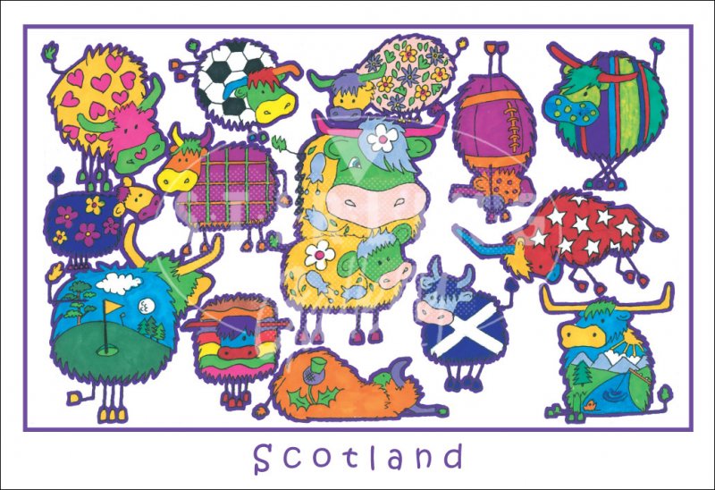 Highland Cows - Scotland, cartoon Postcard