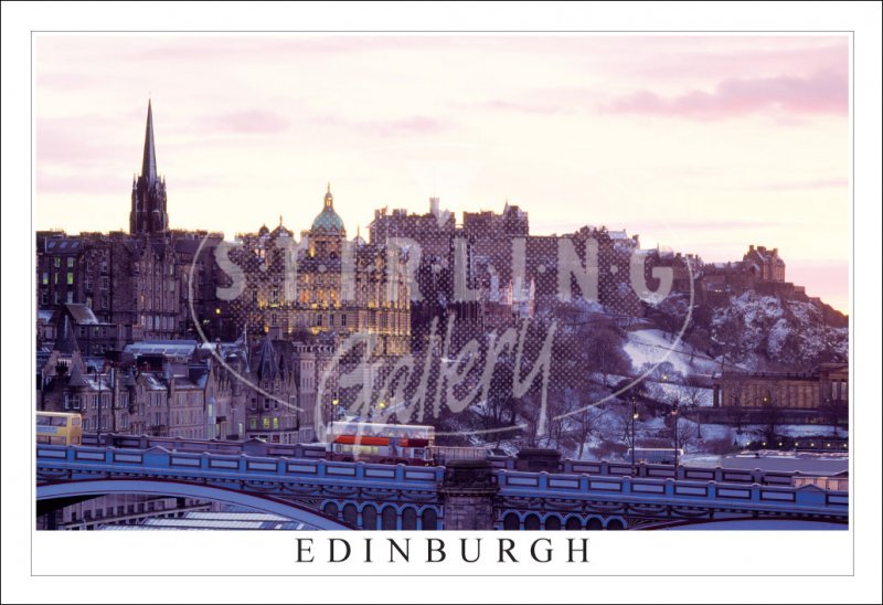 Edinburgh, City Skyline over Waverley Bridge Winter Postcard