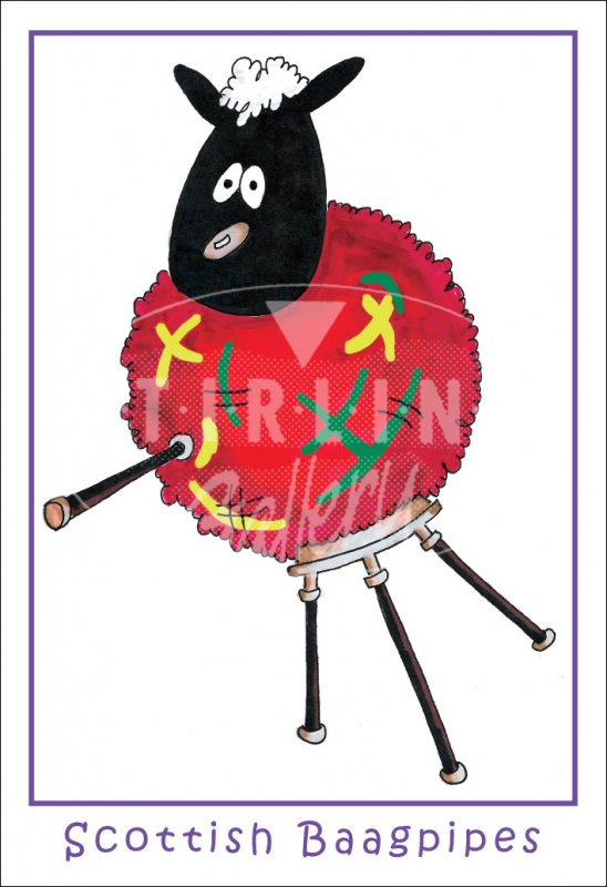 Scottish Baagpipes, cartoon Postcard
