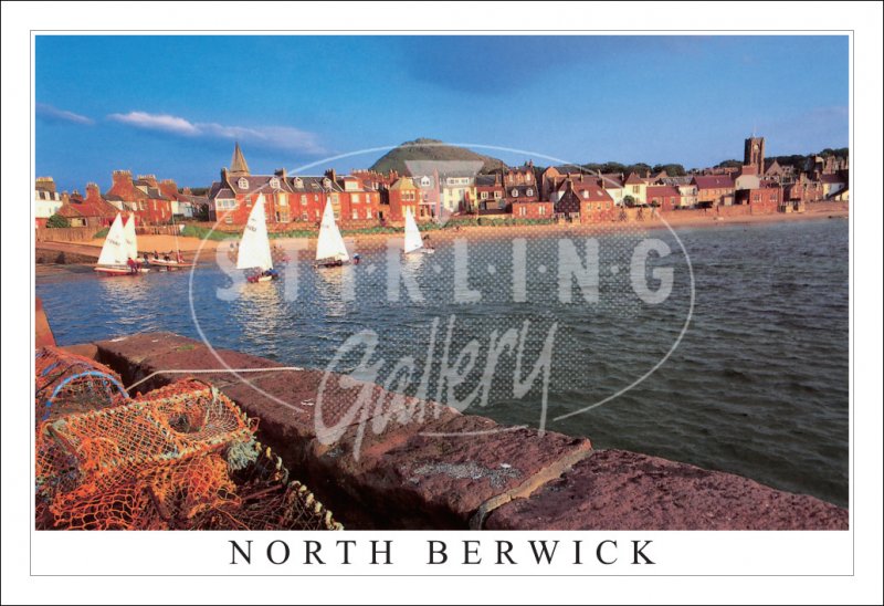 North Berwick, Sailboats by Beach & Berwick Law Postcard