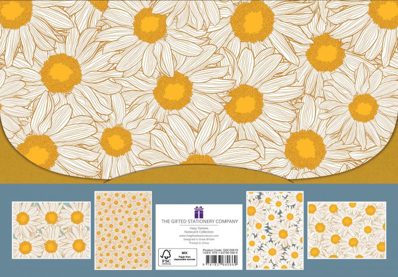 Contains 20 notecards across 4 designs, each notecard is blank inside and accompanied by a white envelope.