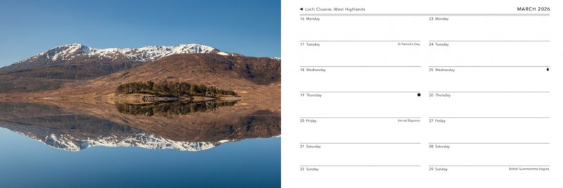 This dairy features a stunning photograph of Scotland from Colin Baxter's collection on each left-page.