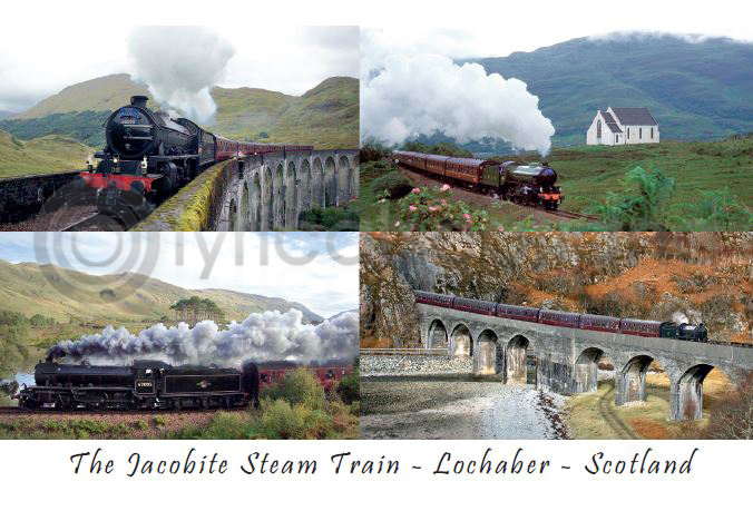 Postcard featuring a compilation of images of 'The Jacobite' through Lochaber in the Scottish Highlands. Our Lyrical Scotland postcards showcase the best views and vistas of Scotland, from the Scottish Borders to the Highlands and Islands. Lyrical Scotland postcard dimensions are 105mm x 155mm and are printed on materials from sustainable sources. |