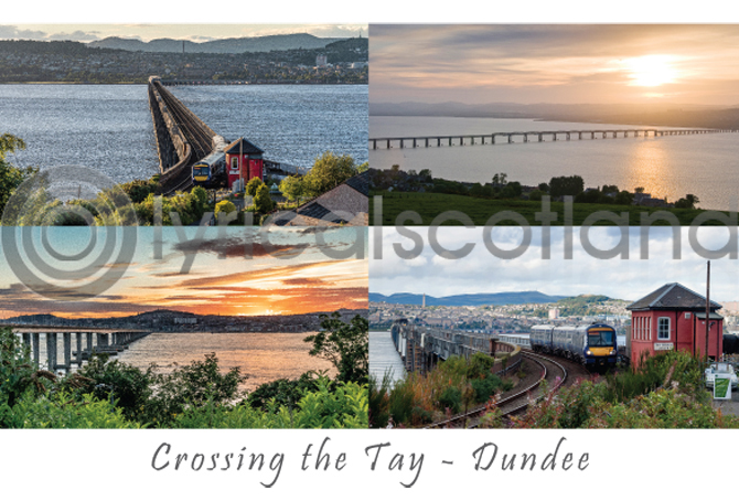 Postcard featuring a compilation of images of the Tay Bridge in Dundee. Our Lyrical Scotland postcards showcase the best views and vistas of Scotland, from the Scottish Borders to the Highlands and Islands. Lyrical Scotland postcard dimensions are 105mm x 155mm and are printed on materials from sustainable sources. |